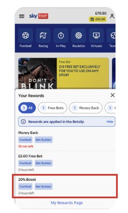 - You cannot use a Booster on a bet placed with a Free Bet or Money Back Rewards.