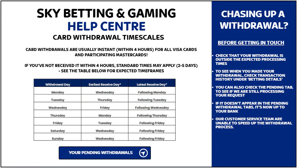 - If you don't have access to this account, then the withdrawal should decline and return to your Sky Betting and Gaming balance.