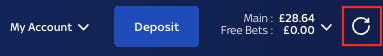 - Please refresh your balance before contacting us . The balance refresh button looks like a curved arrow: